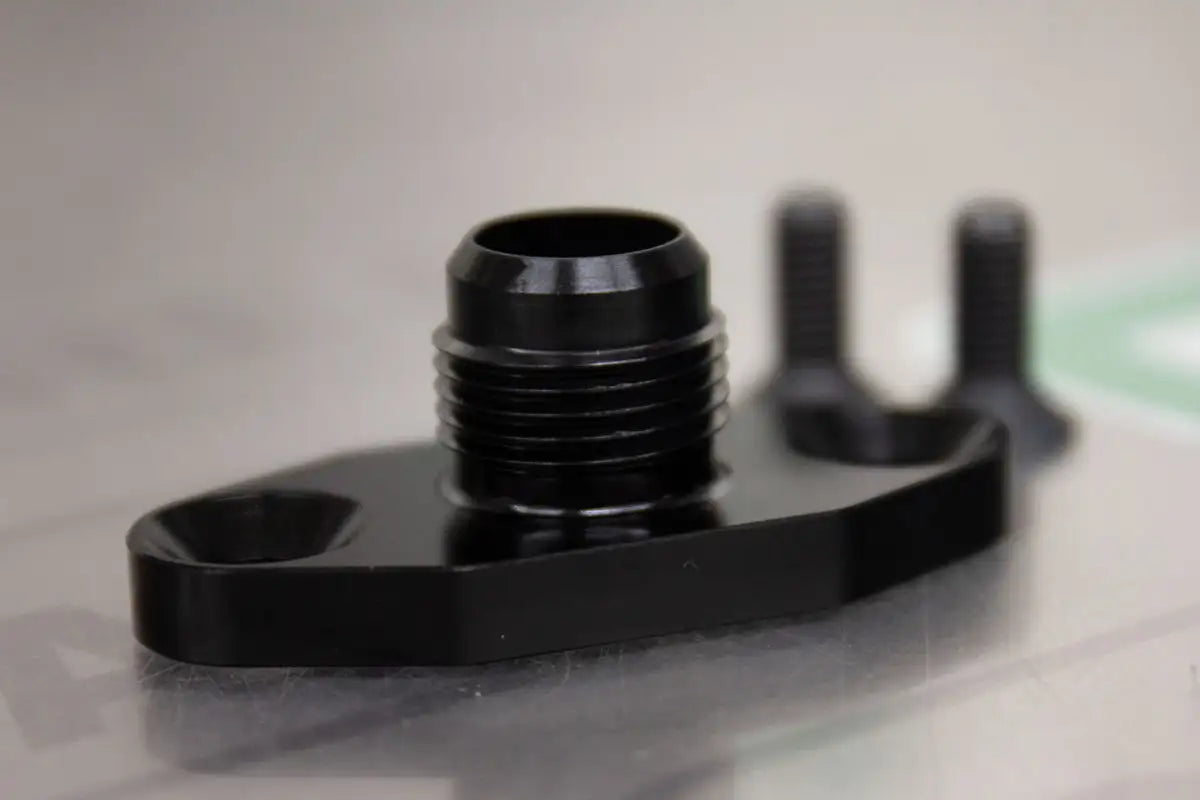 - 10AN fitting incorporated into the flange